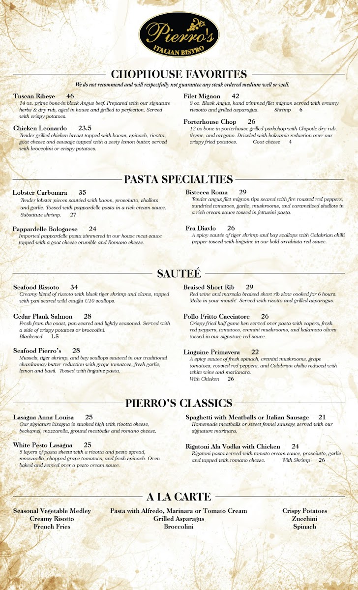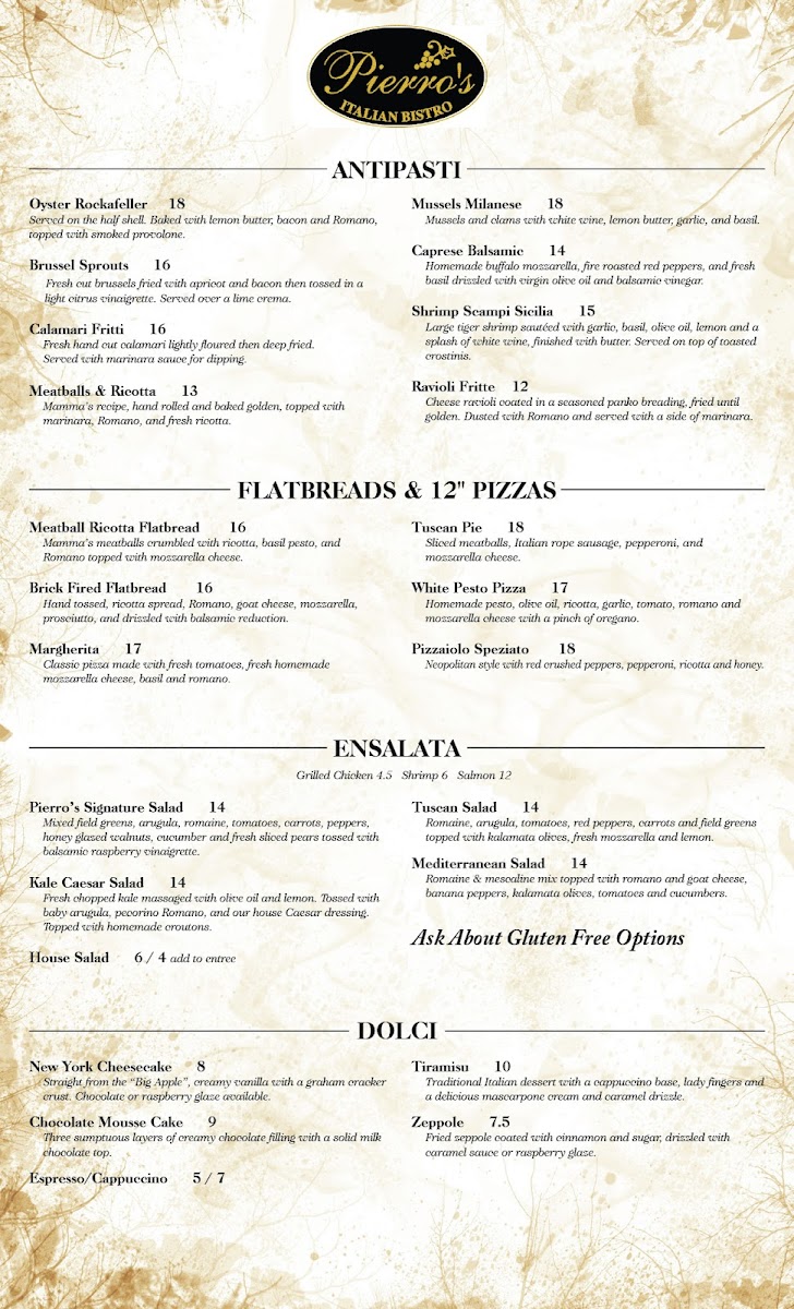 Every plate is crafted with care, which is evident in the rave reviews from guests who appreciate the warm, inviting atmosphere. A visit to Pierro's promises exceptional dining, where authenticity meets culinary creativity.